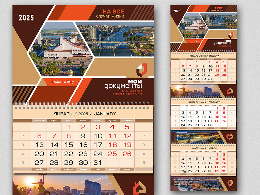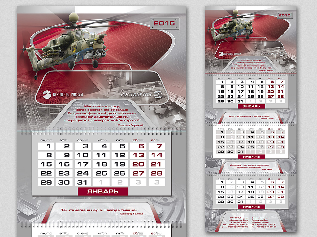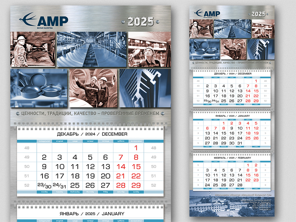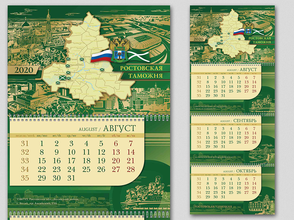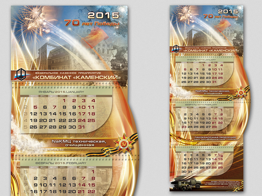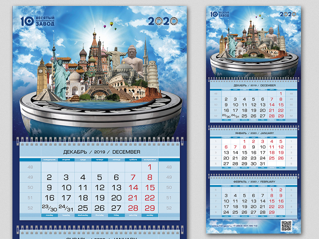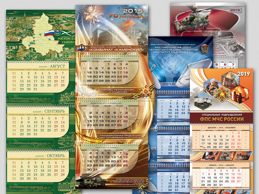 Мы предлагаем то, что выделит ваш календарь среди других, — качественный индивидуальный дизайн топ-слайда и, по желанию, отрывных листов календаря. Индивидуальный дизайн может быть выполнен для каждого из трех календарных блоков или для каждого из тридцати шести листов календаря. «Эконом» вариант предполагает использование стандартных календарных блоков без персонализации.
